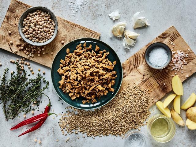 During the so-called Cooking-Extrusion, the used plant protein are mixed with water and further ingredients, heated up and finally cooled down again with the help of a nozzle. By applying this method, we are able to achieve the firm to bite fibres of M¡dori® - entirely without the use of animal products or chemicals. We are currently mainly working with our sun pea – the yellow pea, oats, potatoes and different spices.